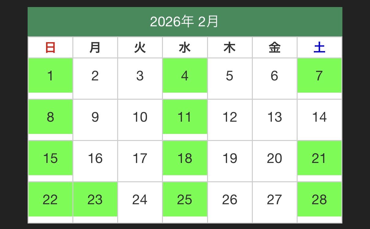 1月も2週目以外は土日祝日と水曜日オープン予定です。