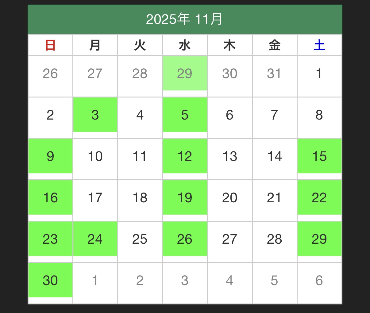 11月の日程をお知らせいたします。